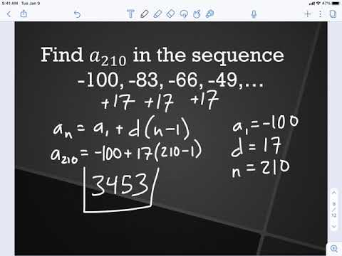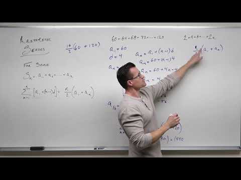 Learn all about arithmetic sequences and series in this video by Mario's Math Tutoring. We discuss the formula for finding a specific term in an arithmetic sequence as well as the formula for finding the sum of an arithmetic series. We discuss the sigma (summation) notation, as well as go through numerous example problems. Timestamps: 00:00 What is an Arithmetic Sequence and Series? 0:54 How to find the formula, sixth term and 100th term in the sequence 3,5,7,9,11, 1:15 Discussion of the notation when working with sequences 3:55 Example b Find the Sum of the first 6 terms 4:11 Discussion of where the Arithmetic Sum of a Series Comes From 5:20 Example c Find the Sum of the Series given in Summation Notation 6:46 Example d Write a Rule for the Arithmetic Sequence 12, 7, 2,... 8:04 Example e Write a rule given the third term is 8 and the 6th term is 23 10:29 Example f Find the Sum of an arithmetic series given in summation notation. 11:40 Example g Find the sum of an arithmetic series given in summation notation. 12:12 Example h find the number of terms in an arithmetic series given the sum 14:20 Example 1 Write a rule for the Arithmetic Sequence -6, -2, 2, 6, 10... 15:11 Example 2 Find the Sum of the First 18 terms of -6 + -2 + 2 + 6... 16:06 Example 3 Find the sum of the Arithmetic Series in Sigma notation 17:03 Example 4 Write a rule for the arithmetic sequence given a term and the common difference 18:22 Example 5 Write a Rule for the arithmetic sequence given 2 terms. 19:40 Example 6 Find the number of terms of the Arithmetic Series given in Summation notation and given the sum. Related YouTube Videos to Help You: Geometric Sequence Formula * Organized List of My Video Lessons to Help You Raise Your Scores & Pass Your Class. Videos Arranged by Math Subject as well as by Chapter/Topic. (Bookmark the Link Below) ➡️JOIN the channel as a CHANNEL MEMBER at the "ADDITIONAL VIDEOS" level to get access to my math video courses(Algebra 1, Algebra 2/College Algebra, Geometry, and PreCalculus), midterm & final exam reviews, ACT and SAT prep videos and more! (Over 390+ videos)