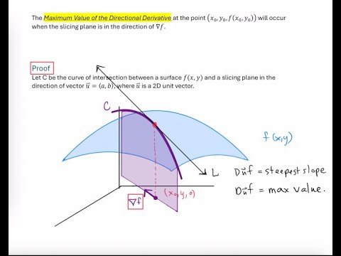 A conceptual drawing that explains what the directional derivative is. Also includes an explanation of how the first partial derivatives with respect to x & y are special cases of the directional derivative. #math #mathconcepts #calculus #directionalderivative #partialderivatives