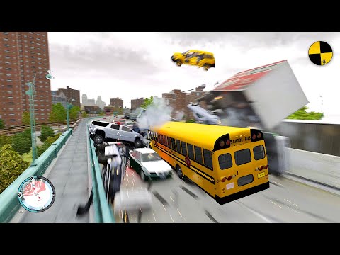 GTA 4 Crazy School Bus Crashes Ep.74