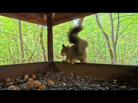 Welcome to Whispering Nature 🌿 In this charming moment, several gray squirrels arrive at different times to check out the snack spot. Each one grabs a bite, looks around cautiously, and sometimes even gets curious about the camera. Their quick visits, little pauses, and playful personalities create a warm and peaceful woodland scene. Enjoy the calm rhythm of nature and these adorable forest visitors. #nature #squirrels #graysquirrel #wildlife #forestlife #whisperingnature #autumnvibes #naturelovers #closeupwildlife #canadianwildlife #cutemoments #animalvideos